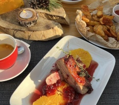 Ресторан- блюда вкусны,разнообразие мясных и рыбных блюд, спасибо шеф- повару. Завтраки- шведский стол достойный, наедались до вечера. Очень приятные массажи, массажистов привозят из Москвы, профи все. Баня с чаном. Мы были большой группой и все довольны.Приедем сюда ещё раз
