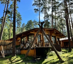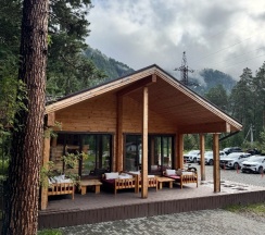 Приятно когда ты только приехал и тебя уже всё начинает радовать. На ресепшене встречают прекрасные девушки, всё объяснили доступно,не возникло никаких проблем,по поводу того,что я забыла все документы дома!))) Во время регистрации,предложили бокал шампанского,это было приятно и немного неожиданно даже. После регистрации нам помогли доставить вещи до домика,а мы смогли налегке добраться сами. Очень радует тот факт,что всё выполнено вокруг в одной стилистике,всё дома сделаны из одинакового бруса, дорожки деревянные,по ним удобно ходить и точно не заплутаешь!)) Находится база на берегу Катуни и для того,чтобы наслаждаться прекрасным видом,там расположены шикарные удобные качели. В самих домиках, всё чисто и комфортно, для гостя есть много чего из принадлежностей. Мы отдыхали с детьми и детская площадка на территории это очень здорово. В стоимость входит завтрак,и как для нашей семьи это было просто идеально.Шведский стол с 08:00-11:00 с огромным разнообразием очень порадовал, всё вкусно и для разных гурманов. Ресторан с красивым интерьером и прилегающей открытой террасой с фантастическим видом на Катунь. Так же можно отдельно бронировать беседки с мангальной зоной,не дорого. Вообще всё было на высшем уровне,мы обязательно вернёмся!