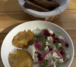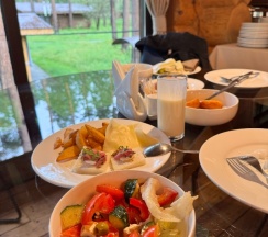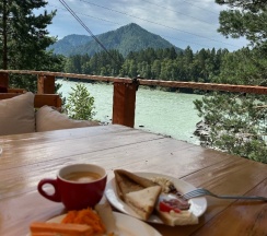 Были очень вкусные завтраки с видами на Катунь и горы.