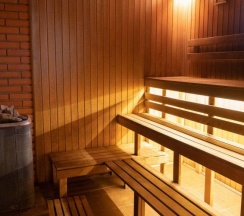 Банный комплекс – комфортный дом на берегу живописного озера (6 человек), отлично подойдет для больших компаний или мероприятий. Уютная кухня, полностью оборудованная для комфортного быта гостей, здесь есть все необходимое: столовая мебель, холодильник, плита, посуда для каждого гостя. Гостиная – спальня, спутниковое ТВ, 2 спальных дивана (возможно предоставление доп. спальных мест),санузел. Большая парная, кадка с чистой прохладной водой, душевая, предбанник, гостиная с обеденной зоной и спутниковым телевидением, кухня, санузел. Комната для отдыха с большой кроватью, холл, а для желающих дополнить отдых веселым и азартным занятием- настольные игры и караоке. На открытом воздухе — веранда с барбекю и местом для отдыха.