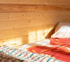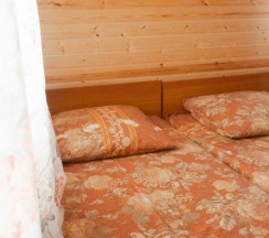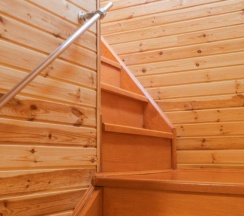 Двухэтажный – (от 4 до 8 человек), теплый дом для всей семьи или дружной компании. Первый этаж – кухня, гостинная, саунузел. Второй этаж – спальня с большой двуспальной кроватью.