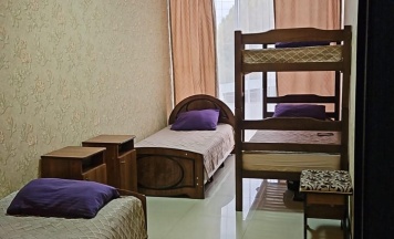 В номере: 2 односпальные кровати и 1 двухъярусная кровать, кондиционер, вентилятор, отопление, шторы, вешалка, стулья. Общая ванная комната: душ, туалет, фен и ванные принадлежности (шампунь и гель для душа).