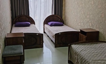 В номере: 3 односпальные кровати, кондиционер, вентилятор, отопление, шторы, вешалка, стулья. Общая ванная комната: душ, туалет, фен и ванные принадлежности (шампунь и гель для душа).