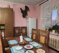 Небольшая кухня и столовая (впритык, при полном заселении постояльцами).