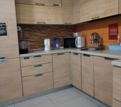 Плюсы: чисто, хороший контингент, хорошие администраторы, посуды на кухне вся, что надо.