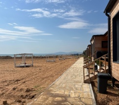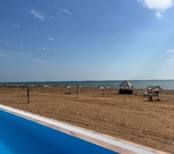 Отдыхали в августе 2023. У нас было 2 номера рядом 2х местный и 3х местный. 3х местный поновее, побольше. Номера оборудованы неплохо- кондёр, шкаф, чайник, чашки,кровати, сушилка правда одна на 2 номера и по одному стулу на номер на веранде. Санузел везде малюсенький, но в целом функциональный. Пляж до обеда пустынный, это класс. Вкусная еда в столовой, завтраки не очень разнообразные, но 2 вида каши, яйцо в каком-нибудь виде, сырники, блинчики, хлеб, масло, сыр, огурцы, помидоры, чай, кофе, хлопья есть и это в формате шведского стола, мы наедались. есть небольшая детская площадка. Уборка через день, полотенца меняют раз в 3 дня, пляжные полотенца тоже выдают. Питьевую воду дают по требованию на ресепшене. Аэропорт близко, но если отдыхать без машины, надо ездить на такси (номер местного такси лучше спросить на ресепшене, приезжает быстрее чем Яндекс), также организуют экскурсии.