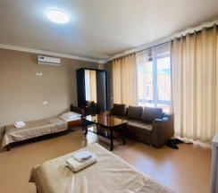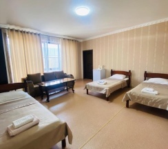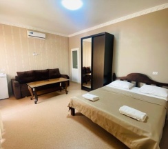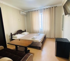 В номерах все необходимое. Вода есть всегда. Кондиционеры. Несмотря на то что находится прямо на самой оживленной трассе Дагестана, в номерах не шумно. Отдельная благодарность за вкуснейшие ужины, которые по нашему желанию нам накрывали во дворе! И уважение и добрые пожелания хозяину, каждый день участвующего в жизни своего детища. С удовольствием еще остановимся.