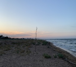 Пляж дикий, под ногами ракушечник. Если уйти вправо на 300 м, замечательное место - при заходе в воду под ногами мягкий мелкий песочек. Заход постепенный, долго мелко. В наши дни была плохая погода: пасмурно, дожди, ветры, штормило. Зайти в море получилось 2 раза. Но никакой канализации в данном месте не было, запахов, мусора в воде не было.