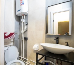Стандарт улучшенный №2: отдельная прихожая с вешалкой для одежды, большая кровать, раскладной диван, возможно 2 доп. места, телевизор, санузел в номере (туалет + душевая кабина), в санузле жидкое мыло и полотенца.