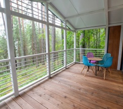 Гостиничный корпус №2 Лесной входит 3 улучшенных номера, объединенных общей большой террасой. Номера располагаются на втором этаже. Вид на Лес!
