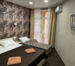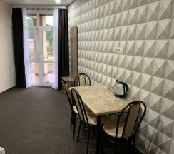 Приветливая администратор, чистые хорошие номера, удобные однокомнатные номера, сначала заселялись двухкомнатный там классно обедать на балконе. Есть мангал на зона и детская площадка, напротив имеются места для парковки, минут 7 пешком до моря есть мостик у моря для перехода на ту сторону речки.