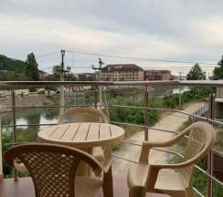 Понравилось: Находится на берегу реки со стороны поселка, в тихом месте, недалеко от рынка и центральной улицы с местными магазинчиками. До моря 7 минут, вдоль берега реки прогулочным шагом, далее через мостик к пляжу.