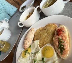 Заехали пообедать , прекрасная ухоженная территория, приветливый персонал ресторана, вкусная еда! Нам очень понравилось и на выходе решили уточнить по стоимости и условиям проживания. Так вот женщина на ресепшен была крайне неприветлива, мы прям вытягивали из нее информацию, которой ей по всей видимости делиться не хотелось. Очень жаль, когда собственник делает все для людей, а сотрудники не разделяют эту позицию 🤷‍♀️