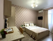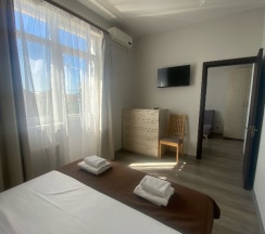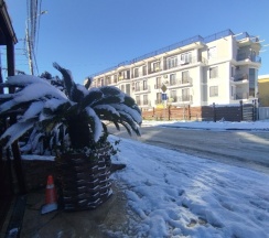Апартаменты приятно удивили, даже лучше чем на фото. Современная мебель свежий ремонт, в номере есть балкон с сушилкой, столик. Тёплый пол в ванной, мыльные принадлежности.Большая удобная кровать, чайник, холодильник. Есть отдельная кухня, небольшой бассейн . Кофе-автоматРядом магазины пятерочка и магазинчик фрукты, овощи, аптека. Дойти до пляжа Мантера 20-25 минут, мимо олимпийского парка. Ближайшая столовая -Сели поели. Вежливый персонал, заселилась на час раньше! Рекомендую, мне понравилось!