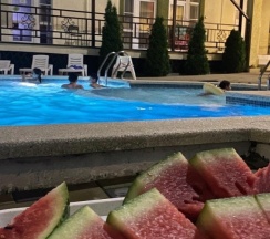 На территории есть бар, где готовят очень вкусный шашлык. В номере все необходимое, телевизор, сплит система, холодильник, чайник. чистый и уютный номер.. бассейн с подогревом что очень важно) Весь персонал всегда держит руку на пульсе и всегда готовы помочь)) нам удалось попасть на детскую Анимацию( ребенок в восторге) Огромное спасибо вам.. за комфорт и уют... Обязательно вернёмся снова)