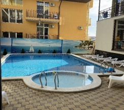 Из плюсов: большой бассейн, который всегда тёплый, что очень спасало, так как за время нашего прибывания море было холодным; детская площадка; летняя Кухня, хороший вай Фай