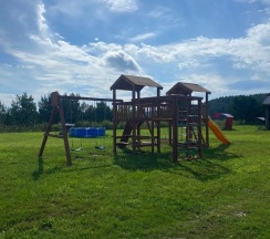На территории отличная детская площадка, мого разных видов качелей на все возраста)) С некоторых - открывается прекрасный вид на реку. мангальная зона бесплатна для пользования, под навесом стоят велосипеды, которые можно взять покататься. а вечером так красиво коттеджи подсвечены...!