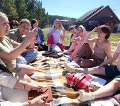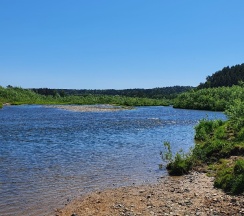 С утра ходили с ребятишками на реку подальше от базы - около базы для рыбалки река мелкая