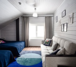 Второй этаж: туалет, гостиная с кроватью, две спальни, балкон