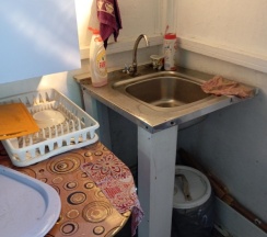 Получили за эту цену отдельные душ, туалет и кухню. Все чистое, все оборудовано и продумано: свет горит, туалетная бумага есть, теплая вода есть, чайник, микроволновка, плита, холодильник, посуда, столовые приборы.