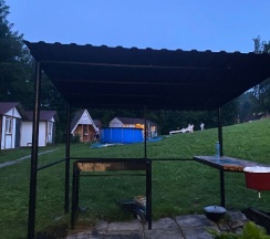 Есть мангальная зона, есть зона для костра и качели с гомаком. Без проблем и без очереди пожарили шашлыки, кухня не маленькая. Хозяйка отзывчивая.