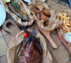 Ресторанчик на территории с вкусной едой по приемлемым ценам и прекрасным видом на море.