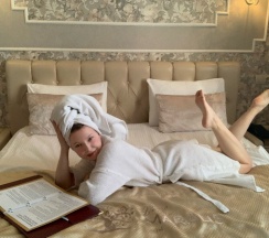 А просыпаться там вообще одно удовольствие, тишина, удобная кровать и хрустящее постельное белье, из под которого даже не хочется вылезать! Выманить нас оттуда смог только вкуснейшие завтрак и ароматный кофе,которые приносят прямо в дом)