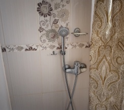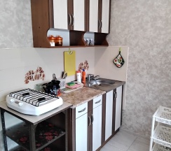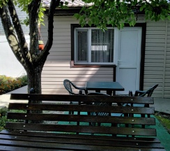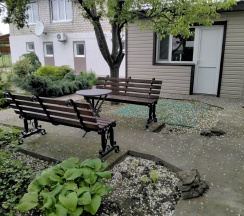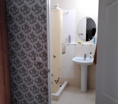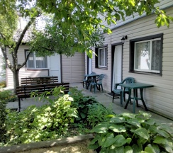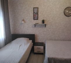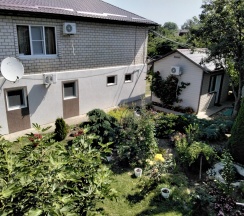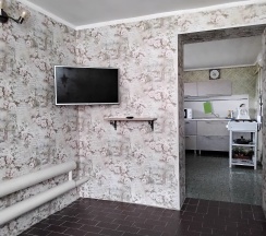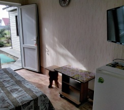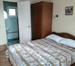 Апартаменты 3х местные расположены в отдельном домике на первом этаже.Хорошая качественная мебель,новые матрасы,телевизор,кондиционер,платяной шкаф,столик со стульями холодильник,свой сан узел с душевой.Апартаменты оборудованы собственной кухней со всей необходимой посудой. Номер имеет собственный отдельный выход на улицу,где можно отдохнуть за столиком под грушей. В гостинице,для удобства отдыхающих имеется кухня,работающая круглосуточно.На кухне есть все,что может потребоваться хозяйке для приготовления пищи.Кроме 5 столиков на кухне,можно покушать на природе под декоративным навесом.Для быстрого разогрева пищи взрослым и детям установлена микроволновая печь.С горячей и холодной водой у нас нет проблем,в гостинице своя насосная станция.Парковка для авто на улице,места много.