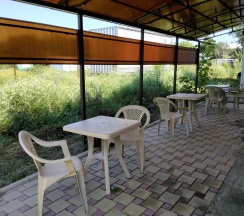 Апартаменты с 2 спальнями расположены на 1 этаже дома и имеют отдельный вход.Хорошая качественная мебель,новые матрасы,телевизор,кондиционер,платяные шкафы,кухонный стол со стульями,газовая плита, холодильник,свой сан узел с душевой,столовая,кухня со всем необходимым.В гостинице,для удобства отдыхающих, также имеется кухня,работающая круглосуточно.На кухне есть все,что может потребоваться хозяйке для приготовления пищи.Кроме 5 столиков на кухне,можно покушать на природе под декоративным навесом.Для быстрого разогрева пищи взрослым и детям установлена микроволновая печь.С горячей и холодной водой у нас нет проблем,в гостинице своя насосная станция.Постирать белье вы можете в душевой,или заказать платно. Парковка для авто на улице,места много.До пляжа можно доехать на маршрутном такси или прогуляться пешком.
