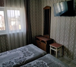 Комфортный 4х местный номер со всеми удобствами:телевизор,холодильник,кондиционер,душевая с туалетом,журнальный столик,большой платяной шкаф.Номер расположен на 1 этаже,что очень удобно для пожилых и семей с маленькими детьми.