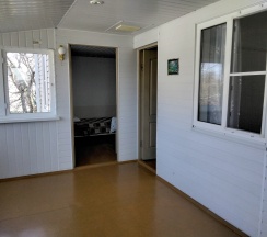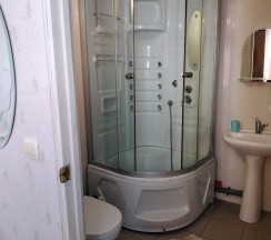 Номера Делюкс расположены на 1 этаже коттеджа и имеют отдельные входы.Хорошая качественная мебель,новые матрасы,телевизор,кондиционер,платяной шкаф,столик со стульями холодильник,свой сан узел с душевой,все это находится в каждом из номеров.В гостинице,для удобства отдыхающих имеется кухня,работающая круглосуточно.На кухне есть все,что может потребоваться хозяйке для приготовления пищи.Кроме 5 столиков на кухне,можно покушать на природе под декоративным навесом.Для быстрого разогрева пищи взрослым и детям установлена микроволновая печь.С горячей и холодной водой у нас нет проблем,в гостинице своя насосная станция.Парковка для авто на улице,места много.