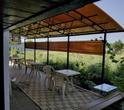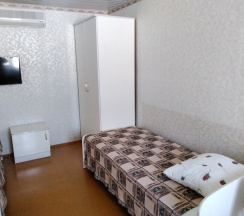 Номера эконом расположены на 2этаже здания.Хорошая качественная мебель,новые матрасы,телевизор,кондиционер,платяной шкаф,столик со стульями,все это находится в каждом из номеров.Сан узел с душевой располагаются частично на этаже,частично на улице.В гостинице,для удобства отдыхающих имеется кухня,работающая круглосуточно.На кухне есть все,что может потребоваться хозяйке для приготовления пищи.Кроме 5 столиков на кухне,можно покушать на природе под декоративным навесом.Для быстрого разогрева пищи взрослым и детям установлена микроволновая печь.С горячей и холодной водой у нас нет проблем,в гостинице своя насосная станция.