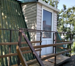 Номер Делюкс расположен на 2 этаже дома и имеет отдельный вход.Хорошая качественная мебель,новые матрасы,телевизор,кондиционер,платяной шкаф,столик со стульями холодильник,свой сан узел с душевой,все это находится в номере.Номер также оборудован своей кухней со всей необходимой утварью.В гостинице,для удобства отдыхающих имеется кухня,работающая круглосуточно.На кухне есть все,что может потребоваться хозяйке для приготовления пищи.Кроме 5 столиков на кухне,можно покушать на природе под декоративным навесом.Для быстрого разогрева пищи взрослым и детям установлена микроволновая печь.С горячей и холодной водой у нас нет проблем,в гостинице своя насосная станция.Парковка для авто на улице,места много.