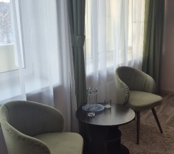 Номер отличный, все красиво и чисто. Такое ощущение, что никто до тебя не жил - ковры, мебель, обои - в идеальном состоянии. Шкаф-купе очень вместительный, удобный. В санузле приятная душевая кабина, есть биде. Особая благодарность за твердый матрас на кровати. Боялась, что будет мягкий и заболит спина. Из минусов: - чтоб вода пошла теплая, надо очень долго ее спускать. - в номере не хватает стульев, а так же на балкон бы стол и табуреточки. - из посуды только графин и два стакана. - телеканалы подключить у нас не получилось, только через интернет можно что-то смотреть. - вайфай бесплатный, но интернет слабоват. Ценник за такой номер вполне приемлемый. Территория очень красивая, запах пихты. Мост - вообще изюминка базы, как и пруды. По вечерам мост подсвечивается, фонтан на пруду переливается разными цветами. Лавочек на территории на мой взгляд маловато. Есть детская и спортивная площадка, очень выручают. Но сломан подвесной мостик в детском городке. И очень нужны лавочки на детской площадке. Не пользовались, но видели очень уютные места для проведения пикников. Если бы жила рядом, на пикник бы приезжала именно сюда. Во время нашего отдыха на базе гуляла свадьба - мы ее вообще практически не видели и не слышали. Вообще на базе тишина и покой, иногда кажется что ты там один. Развлечений никаких нет - это место отдыха, расслабления, а не развлекаловок. Пожелание: отсыпьте дорожку до Томи, будет вообще супер. Персонал очень отзывчивый. Откликаются на любую просьбу, всегда на связи. Спасибо за гостеприимство! Немножко не повезло, что попали в ремонт. Но нас об этом предупредили. Хотя конечно некоторый дискомфорт от ремонта был. В столовой еда домашняя, без изысков. Ценник адекватный. Выбора блюд нет. Завтрак входит в стоимость номера. Из минусов: из напитков только чай и кофе. Хочется разнообразия (компота, морсика). Ну и хотелось бы, чтобы в столовой тебя ждали, не нужно было заглядывать на кухню: мы пришли.