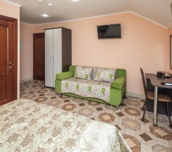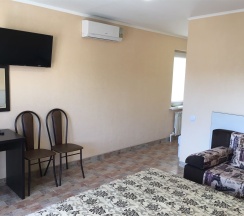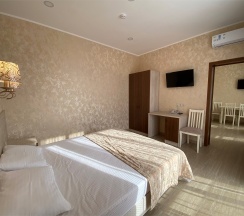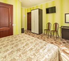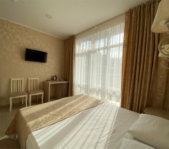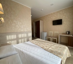 Комфортный 2х комнатный номер с кухней без балкона. Оной двуспальной кроватью и диван кроватью или двумя односпальными кроватями и диван кроватью. Все номера расположены в 3х этажном корпусе №1 "Кипарис". На этаже есть общий балкон с сушилками для белья и гладильные принадлежности. Номера для НЕ курящих. Размещение с животными ЗАПРЕЩЕНО!