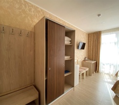 Семейный номер, в трехэтажном корпусе "Каштан" с балконом и видом на бассейн. С одной двуспальной кроватью, одной односпальной кроватью и диван-кроватью или тремя односпальными кроватями и диван-кроватью. Номера для НЕ курящих. Размещение с животными ЗАПРЕЩЕНО!