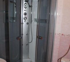 Санузел оснащён современной душевой кабиной и качественной сантехникой.