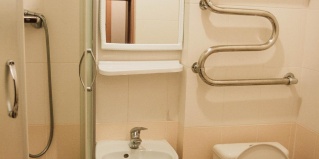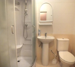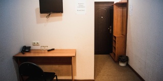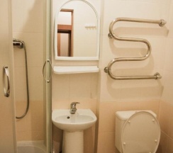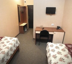 В номере две односпальные кровати, две прикроватные тумбочки, письменный стол, стул, телевизор, телефон, прихожая с зеркалом, шкаф-пенал для вещей. Ванная комната оборудована душем.