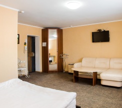 Не понравилось: Люкс не стоит 2600. Да, номер большой, но на этом его плюсы закончились. Принадлежности и полотенца были на одного человека, при двухместном размещении, пол в душе грязный(швы между плитками) и дряблый. Постельное настолько вытертое, что виден рисунок одеяла. Матрас при этом удовлетворителен.