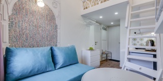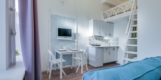 Забронировали студию на выходные. Понравилось, что двухуровневая - внизу гостиная с кухней, наверху спальня. Удобно разделили зоны. Wi-Fi шустрый, посмотрели вечером сериальчик. Из мелочей оценила фен и утюг в общей зоне, пригодились.