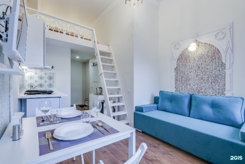 Уютная двухуровневая студия 11 кв.м. в самом центре Санкт-Петербурга, оформленная в стиле нео-готики. Имеется вся необходимая мебель и техника для комфортного проживания: на втором уровне - большая постель с ортопедическим матрасом, а внизу расположен санузел, гостиная и кухня. Имеется двуспальный раскладной диван. Окна студии выходят во внутренний двор, поэтому отдыхать здесь спокойно. Студия полностью автономна: свои санузел и кухня, мини-кухня оснащена индукционной плиткой и специальной посудой для быстрого приготовления завтрака и приёма пищи. В студии располагается санузел с душем. Гостям предоставляется wi-fi, фен, свежее постельное бельё, комплект полотенец по количеству гостей, моющие средства, одноразовые салфетки, бесплатные туалетно-косметические принадлежности, чай, кофе, сахар, соль. В каждой студии есть бесплатные средства для чистки одежды и обуви, дополнительный удлинитель для электрических приборов, зонт и сушилка для обуви. На общей территории расположена гладильная доска, стиральная машина, кофеварка, кулер, микроволновая печь. По вопросам парковки можно уточнить у администратора.