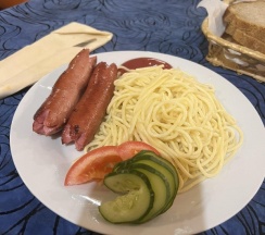 Еда прекрасная, порции большие , соки на выбор , вообще прием пищи на выбор из 3 вариантов , повар прям супер, мы приехали поздно , нас дождались и ужином накормили не по времени. Уезжали рано , с вечера паек дали в дорогу