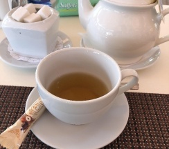 Чай вкусный, подают с шоколадной вафелькой (вроде конфеты)