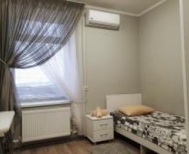Номер с удобствами, холодильником и сплит-системой. В номере установлена полутораспальная кровать с прикроватной тумбочкой и шкаф для одежды.