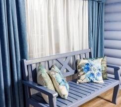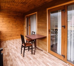 Двухкомнатный четырехместный номер с собственной террасой. В одной комнате проходной расположен диван-кровать, который раскладывается в двуспальное место. В изолированной комнате расположена двуспальная кровать. В номере есть обеденный стол, стулья, 2 телевизора (в каждой комнате, выход на террасу из каждой комнаты. Терасса оснащена столиком и стульями для приятного времяпрепровождения