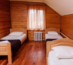 Четырехместный стандартный номер, в котором 1 двуспальная кровать и 2 односпальные, расположен на втором этаже двухэтажного домика. В номере душ, туалет, телевизор , минихолодильник, чайник, чашки, стаканы, ложки