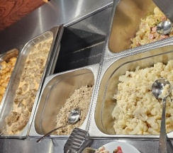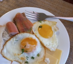 В этот же день пошли на завтрак по системе "шведский стол". Хочу отметить, что еда всегда вкусная, повара стараются для всех отдыхающих, но иногда на обед нам не хватало свежих овощей (забирали гости ранее) или на завтрак выпечки (она безумно вкусная, поэтому на неё был ажиотаж))). В целом мы совершенно не голодали.