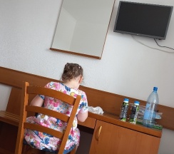 Врач на приеме в этот же день назначила процедуры: ребёнку: физиотерапия мультилор и теплоодеяло, соляная комната, массаж; мне: гидробочка, йодобромная ванная, мини-сауна, душ шарко. Также по путевке было два посещения термо-купели, сауны, посещение бассейна, зала ЛФК.