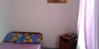 В номере: одна двуспальная кровать, телевизор, холодильник, стол. Удобства в номере.