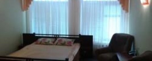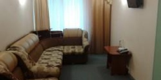 В номере: одна двуспальная кровать, диван, телевизор, холодильник, стол. Удобства в номере.